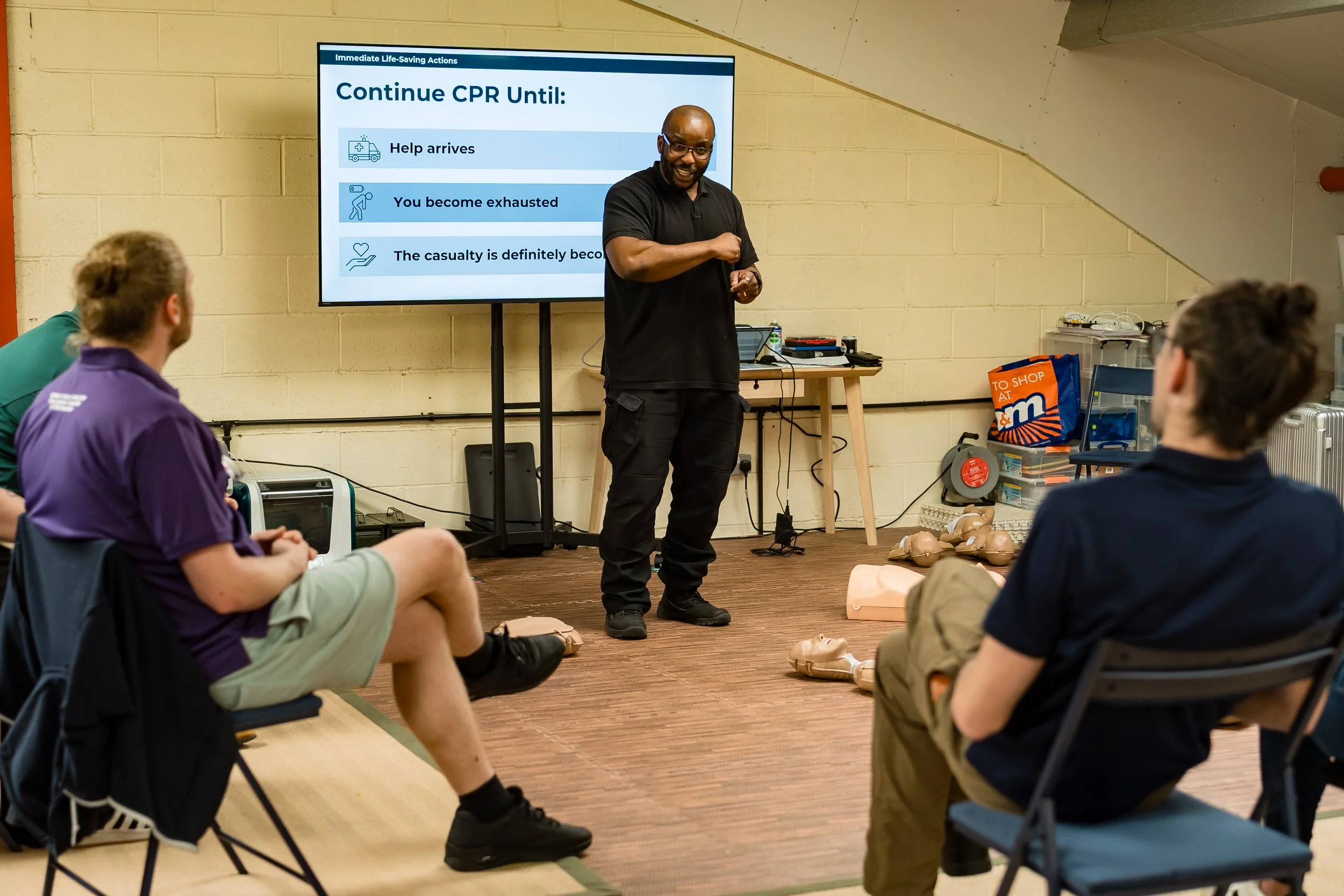 Our instructor, Jason, talking to us about the importance of quick and effective CPR.