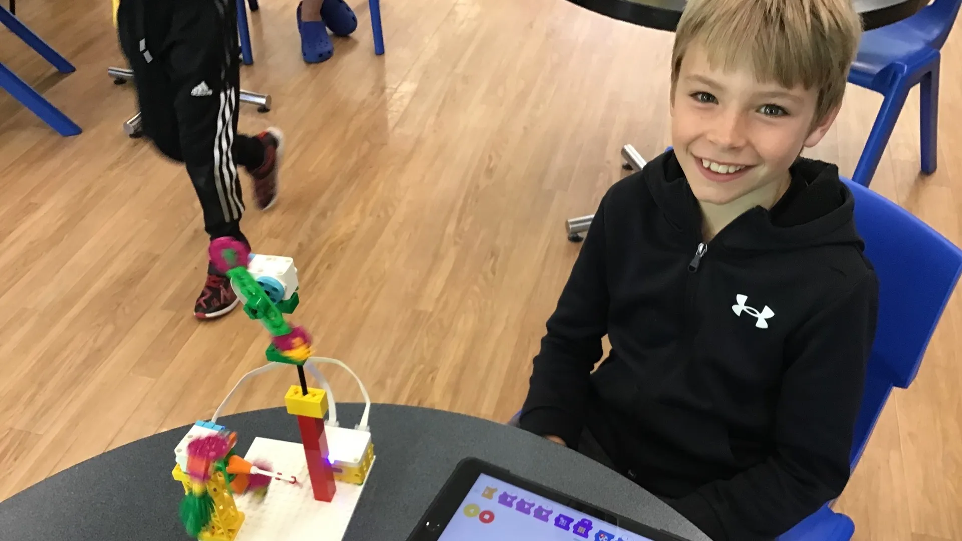 - Leave the rest to us: We bring all equipment, set up before the children arrive, run every session, and pack away at the end. All you need to provide is a suitable indoor space with tables, chairs and power sockets.